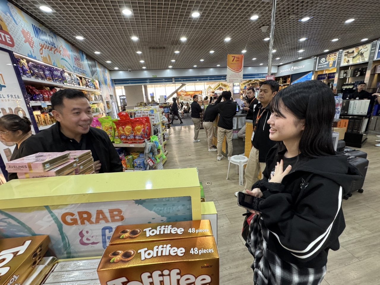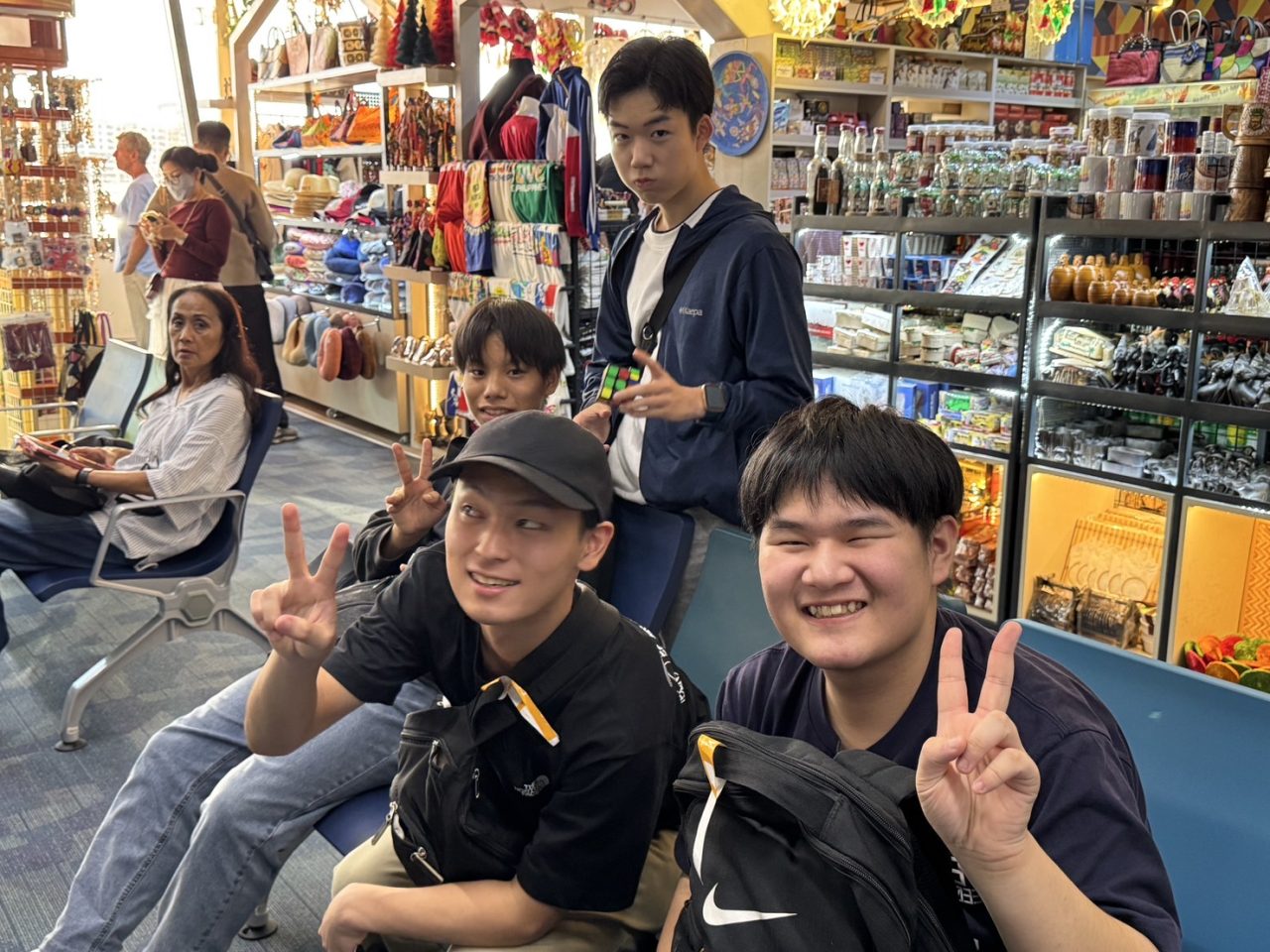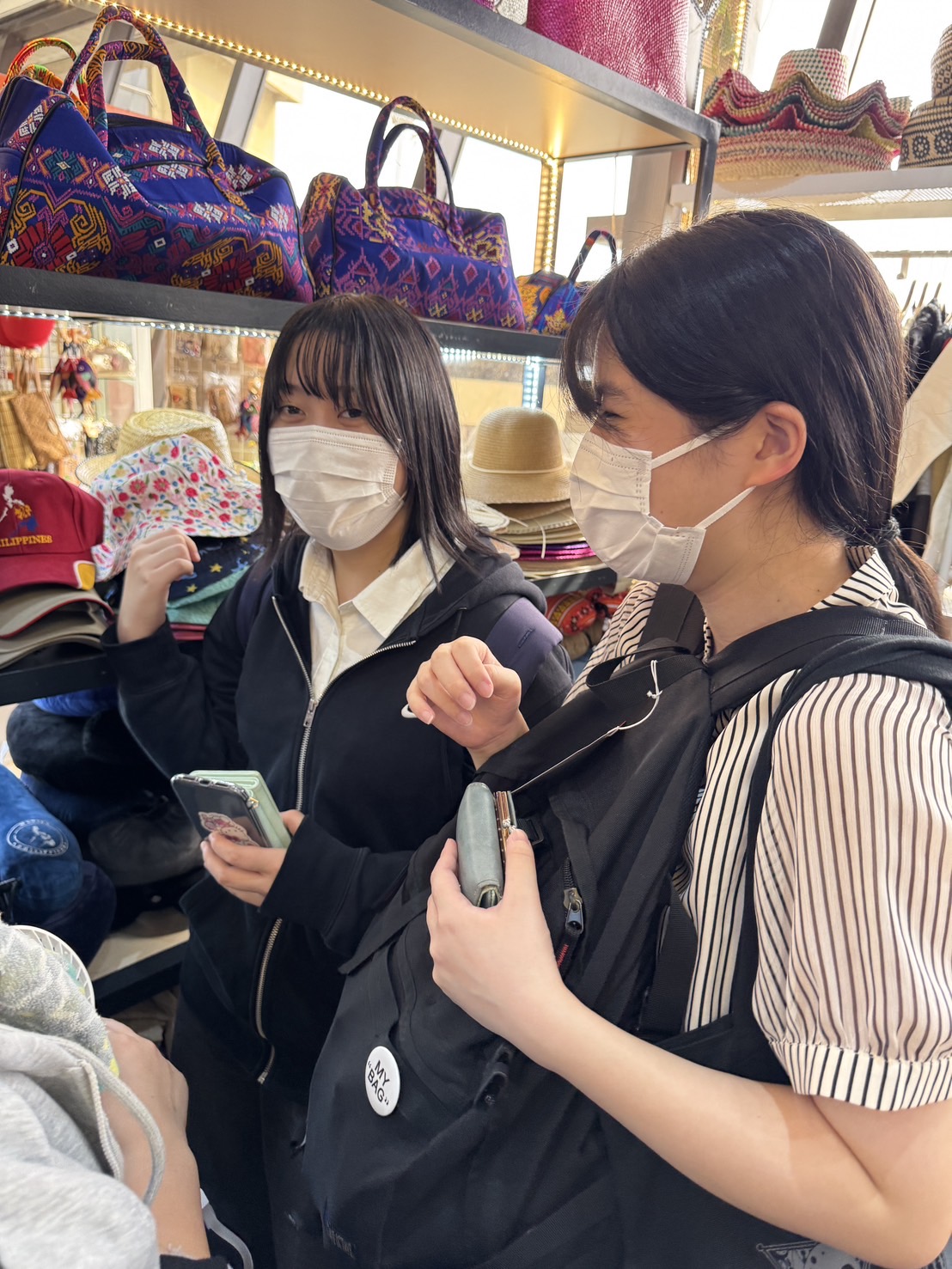 インドネシアに向けて出発した一行は、フィリピンのマニラ空港でトランジットのため、一旦飛行機を降ります。フィリピン空港から出ないとはいえ、空港内は諸外国の方々で溢れ、異国の地に生徒たちは緊張しながらも、フィリピン通貨であるペソを使って買い物体験をしました。