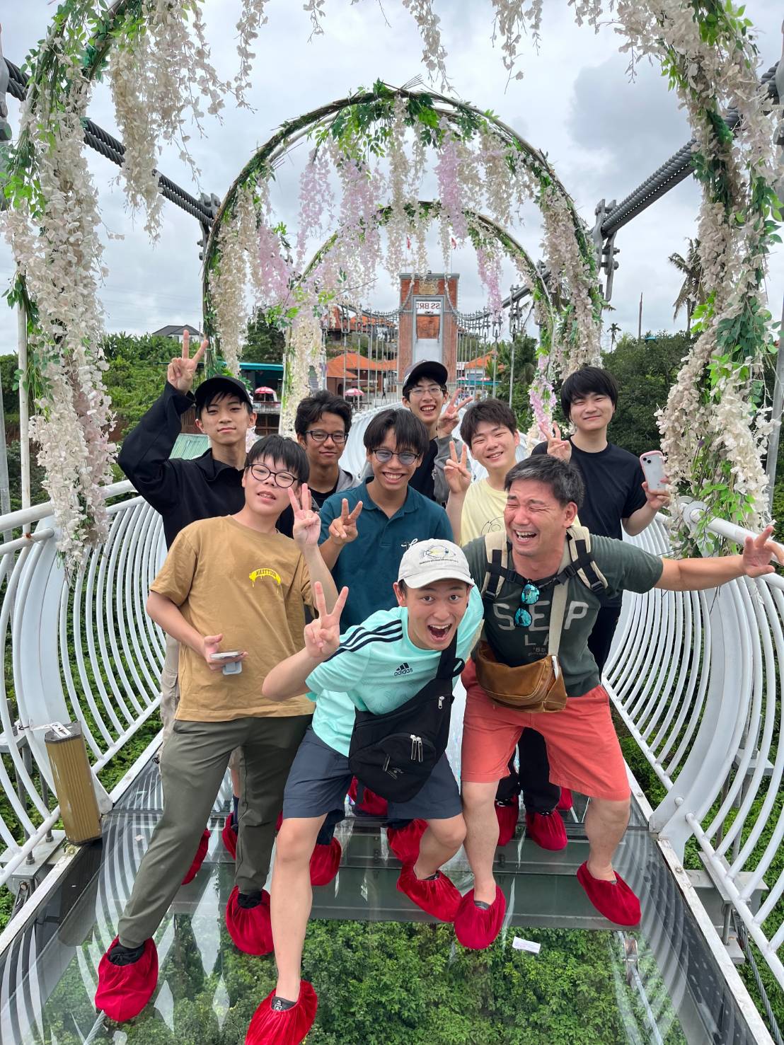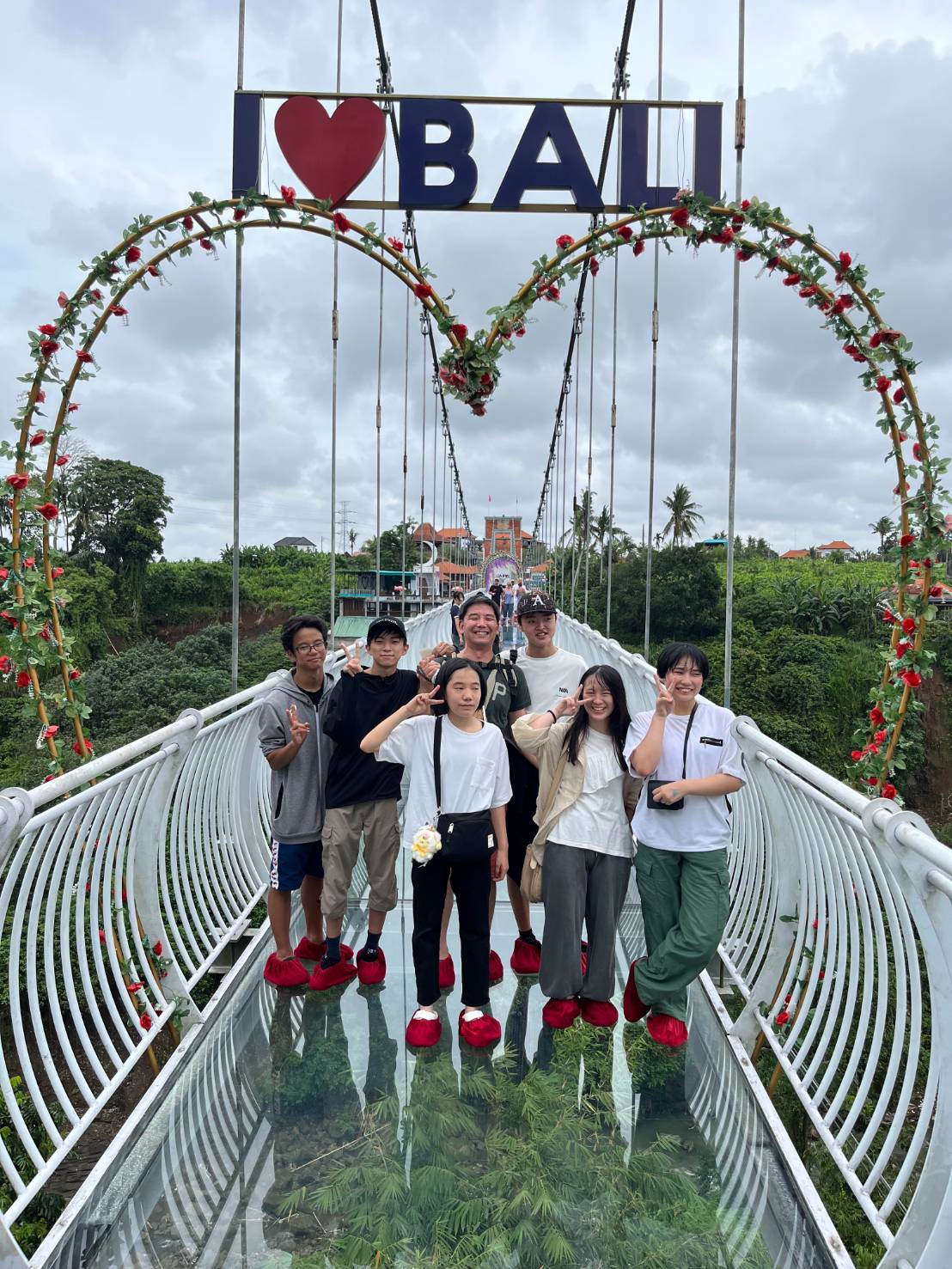 バリ島最終日となる本日は、テグンナガンウォーターフォールにてバリの絶景を楽しんだ後、高所が苦手でない生徒はグラスブリッジと言われる、下がガラス張りの橋を渡りました。さすがに最初は言葉少ない様子がありましたが、慣れてくると空を飛んでいる感覚を楽しんでいる様子がありました。