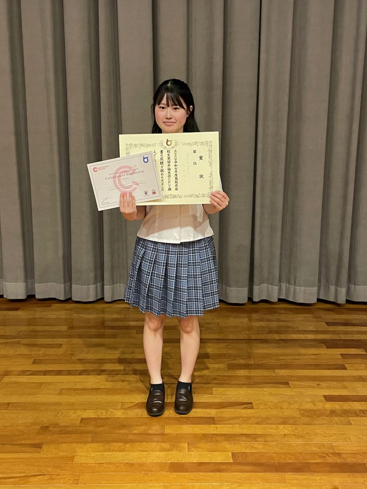 9月21日(日)、北栄町大栄農村環境改善センターにおいて、令和7年度鳥取県高校生英語弁論大会が開催されました。本校からは、高校2年・岡田明子さんが出場し、見事、第1位を獲得しました。岡田さんは、11月22日に山口県で開催される中国地区高等学校英語スピーチコンテストに出場します。 また、来年3月には、令和7年度鳥取県高校生英語弁論大会優秀者海外派遣事業により、ニュージーランドのクライストチャーチに派遣される予定です。 岡田さん、おめでとうございます!