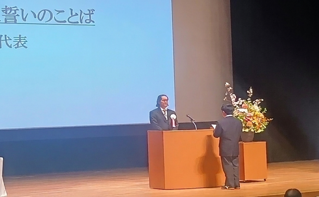 学校長式辞では、「ハチドリのひとしずく」の話に触れながら、今、自分にできることを考え、行動をおこすことの大切さを語られました。また、全員が当事者意識を持ち、課題解決のためのゴールを目指してほしいというスクールミッションを新入生に託されました。
